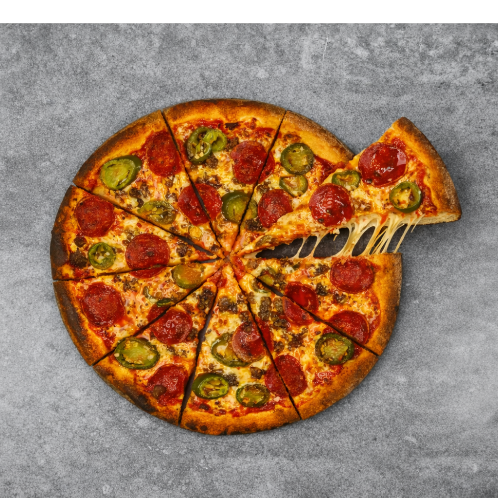 £12.99BBQ Base, Pepperoni, Onions, Jalapeño Peppers, Chillies & Spicy Beef