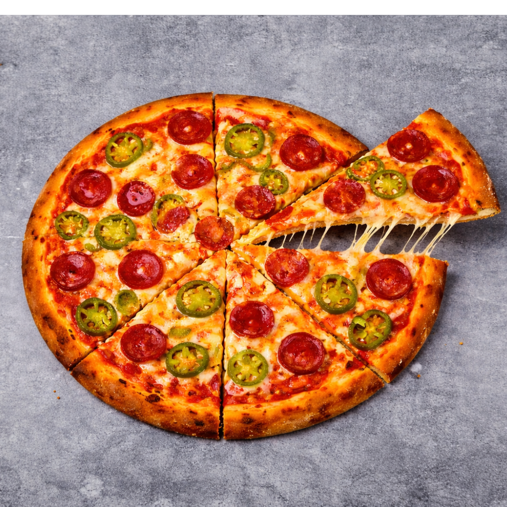 £10.99Pepperoni, Spicy Beef, Jalapeño Peppers & Tabasco Sauce (optional)